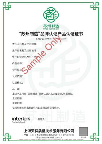 适用于“苏州制造”产品认证。